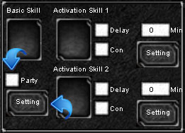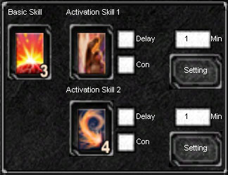. In case of choosing two skills you can also set the time and delay between using them. Check the Delay box and enter the time you want to switch on the 2nd skill in seconds (minimum value is 1, as seen on the picture). If you want to customize your auto attack when attacking monsters, then check the Con box, and then click Setting. Activate appropriate settings after that. Repeat this steps for 2nd skill as well. If you are playing as an Elf(SM) character, you will see some additional options: